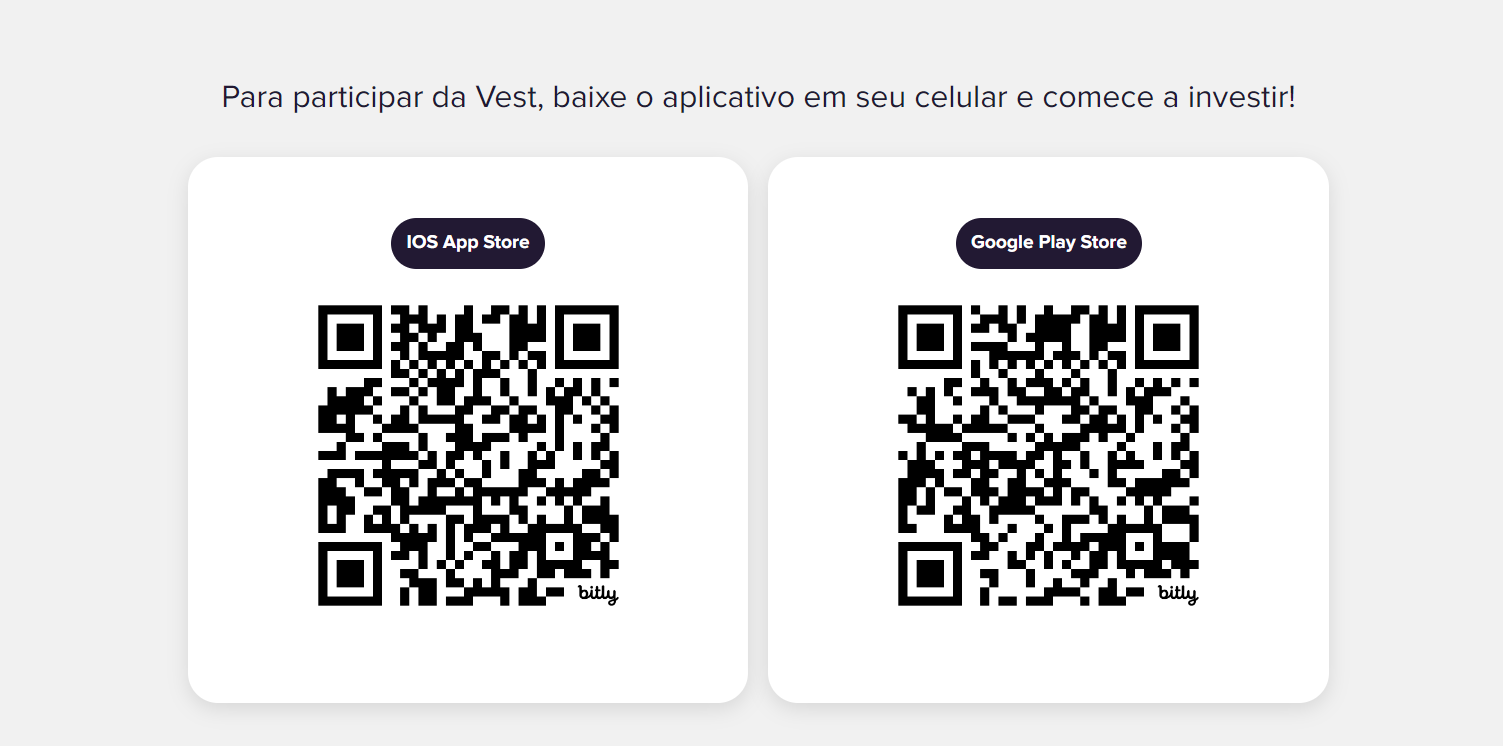 Acesse o site da Vest (https://vest.investments) ou encontre o aplicativo da Vest em sua loja de aplicativos. Se preferir, você pode usar este código QR:
